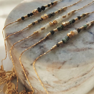 The delicacy and finesse of the Dot and Milos collections and their natural stones.